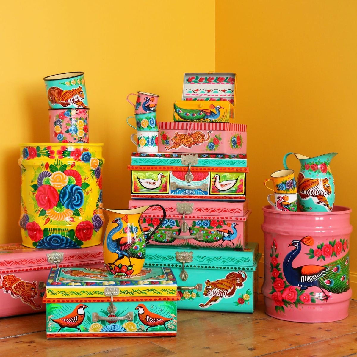 Tea Glass , Set Of 4 With Gold Metal Stand - India Series -